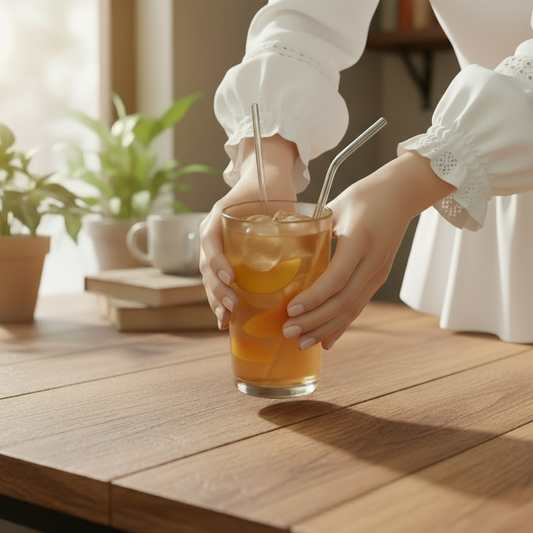 Pailles réutilisables en verre - “Pureté d’Été” – 8 pièces + 2 brosses de nettoyage