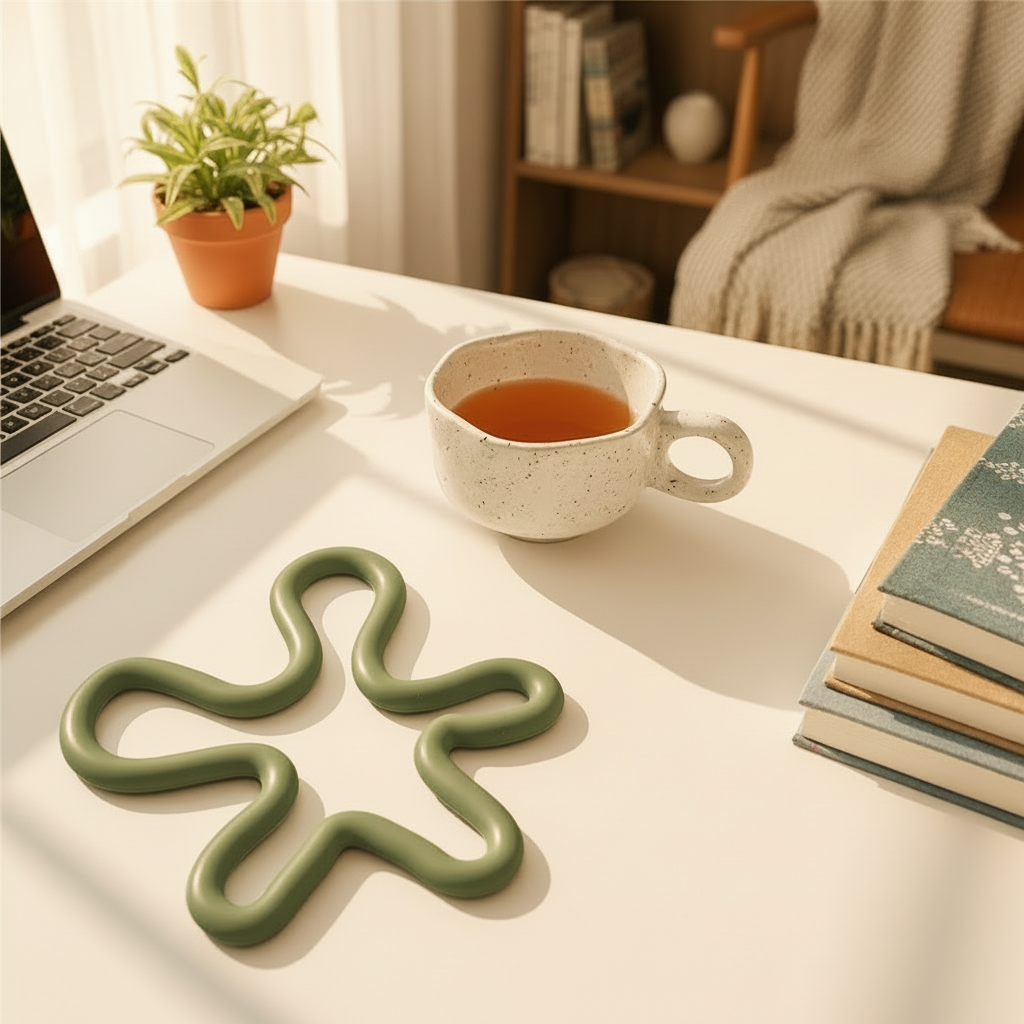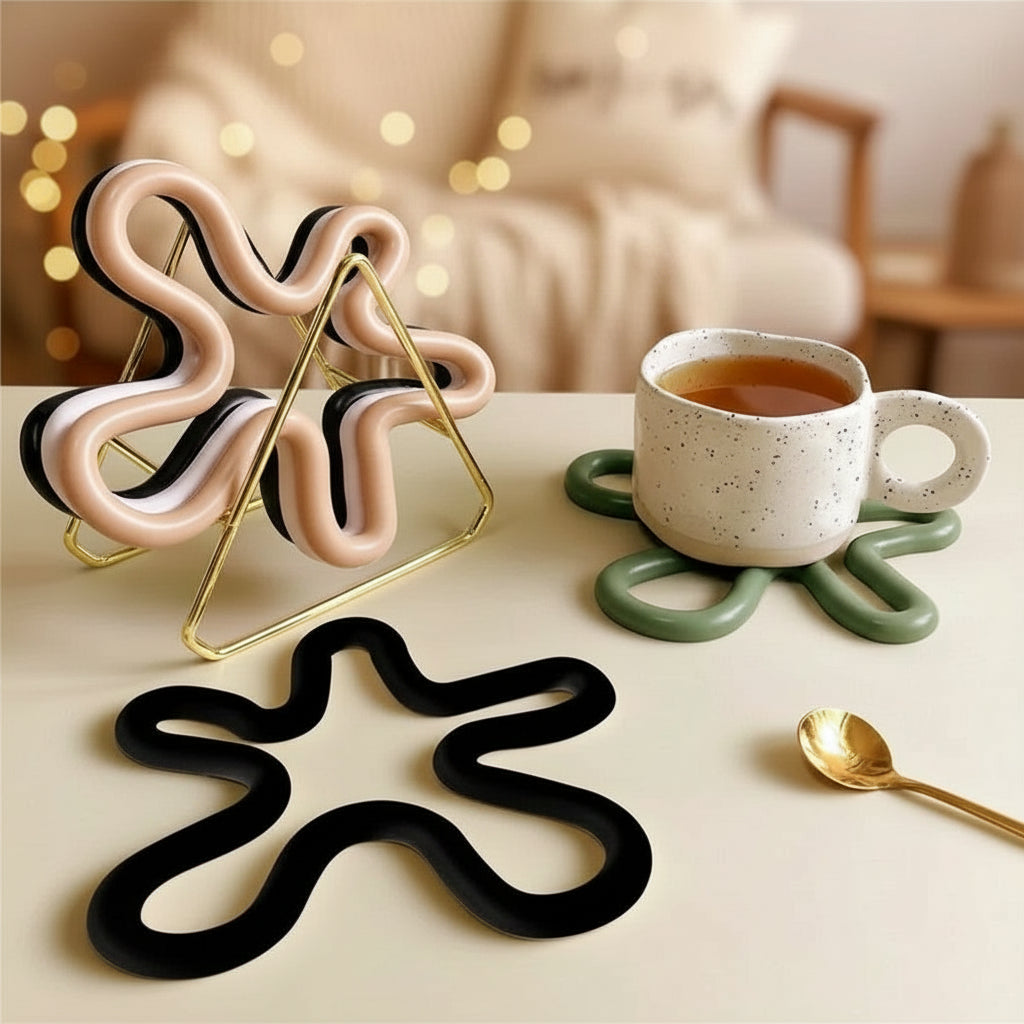 Ce sous-verre géométrique en silicone, résistant à la chaleur, a été pensé pour accompagner vos moments Tearapy avec élégance et sécurité.