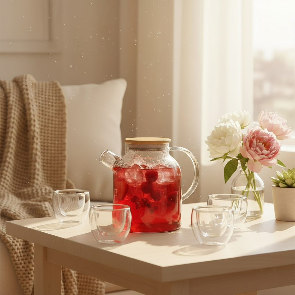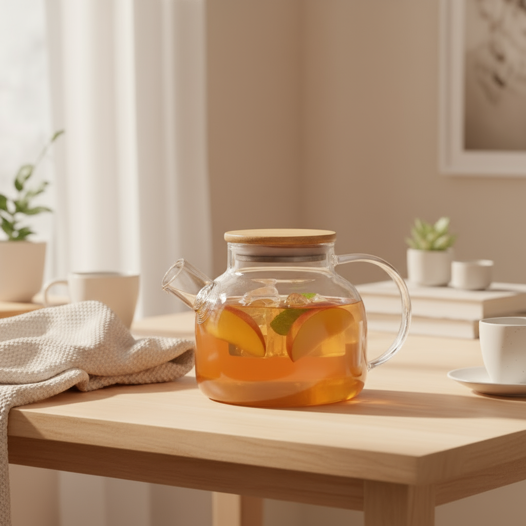 Remplissez la théière d’eau fraîche, ajoutez des tranches de citron, des fruits rouges ou quelques feuilles de menthe.